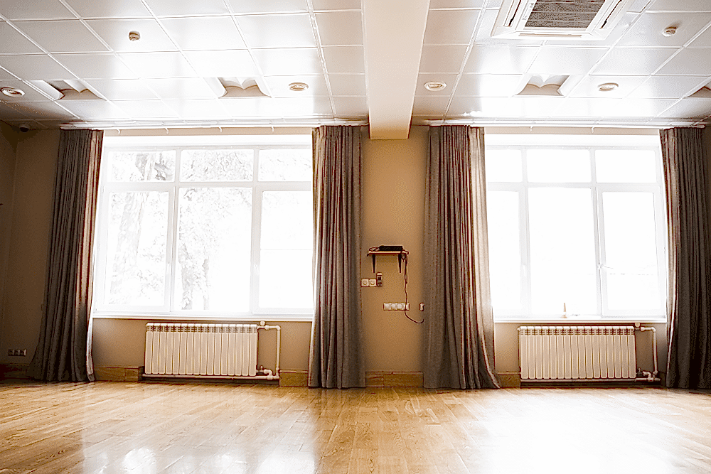 Стоимость аренды залов зависит от дня недели, количества часов и площади зала.
